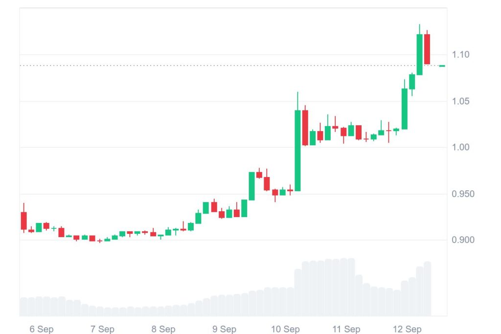 Ondo Finance (ONDO) is gaining momentum as the cryptocurrency markets see increased bullish momentum. The token rose 7.22% in the past 24 hours and 17% in the past week, reflecting increasing confidence within the marketplace.