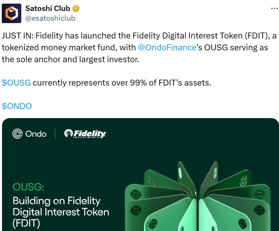 One notable development driving interest is the Fidelity roll-out of the Fidelity Digital Interest Token (FDIT), a tokenized money market fund that incorporates yield-bearing assets on the blockchain. The only anchor investor in Ondo Finance’s OUSG is Ondo Finance, and they comprise over 99% of the fund assets. The strategic development cements Ondo as a tokenized treasuries leader and highlights the growing relevance of real-world assets (RWAs) in crypto.