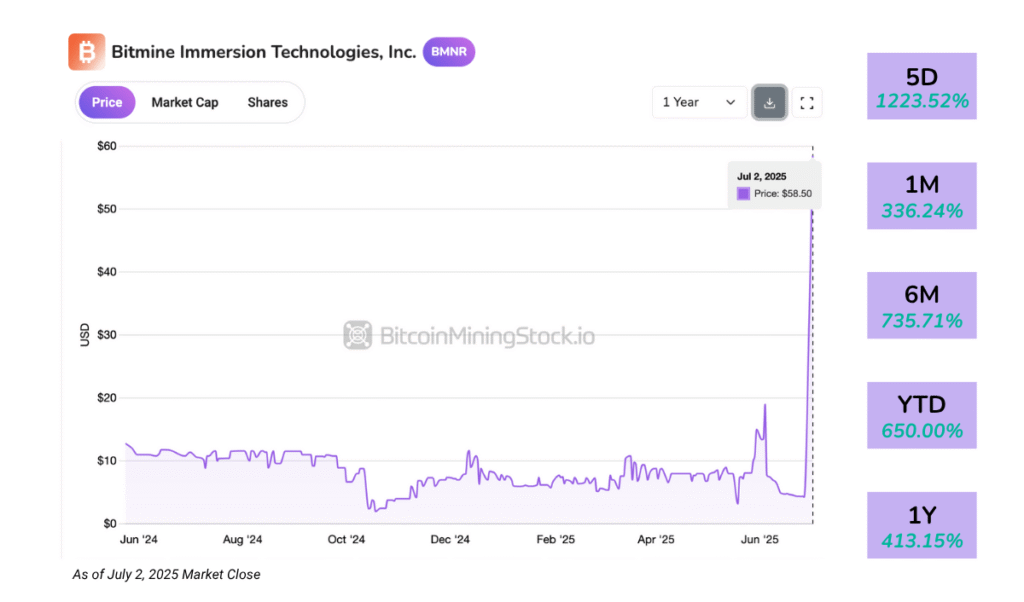 BitMine Immersion Technologies saw its stock price explode after naming Wall Street veteran Tom Lee as Chairman. The company’s shares jumped over 700% in a single day. Now, BitMine is raising $250 million to build a major Ethereum treasury. The firm aims to become the largest publicly listed holder of ETH.